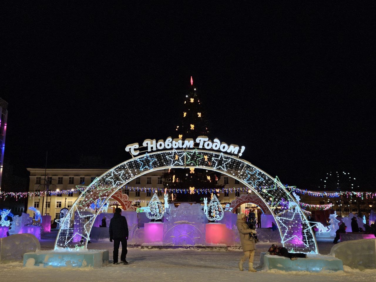 22-метровая ёлка уже украшает Городской парк культуры и отдыха. Сегодня начнётся подготовка к установке большой ели на Театральной площади. Через неделю начнут монтировать ёлку на Старом торге рядом с катком.