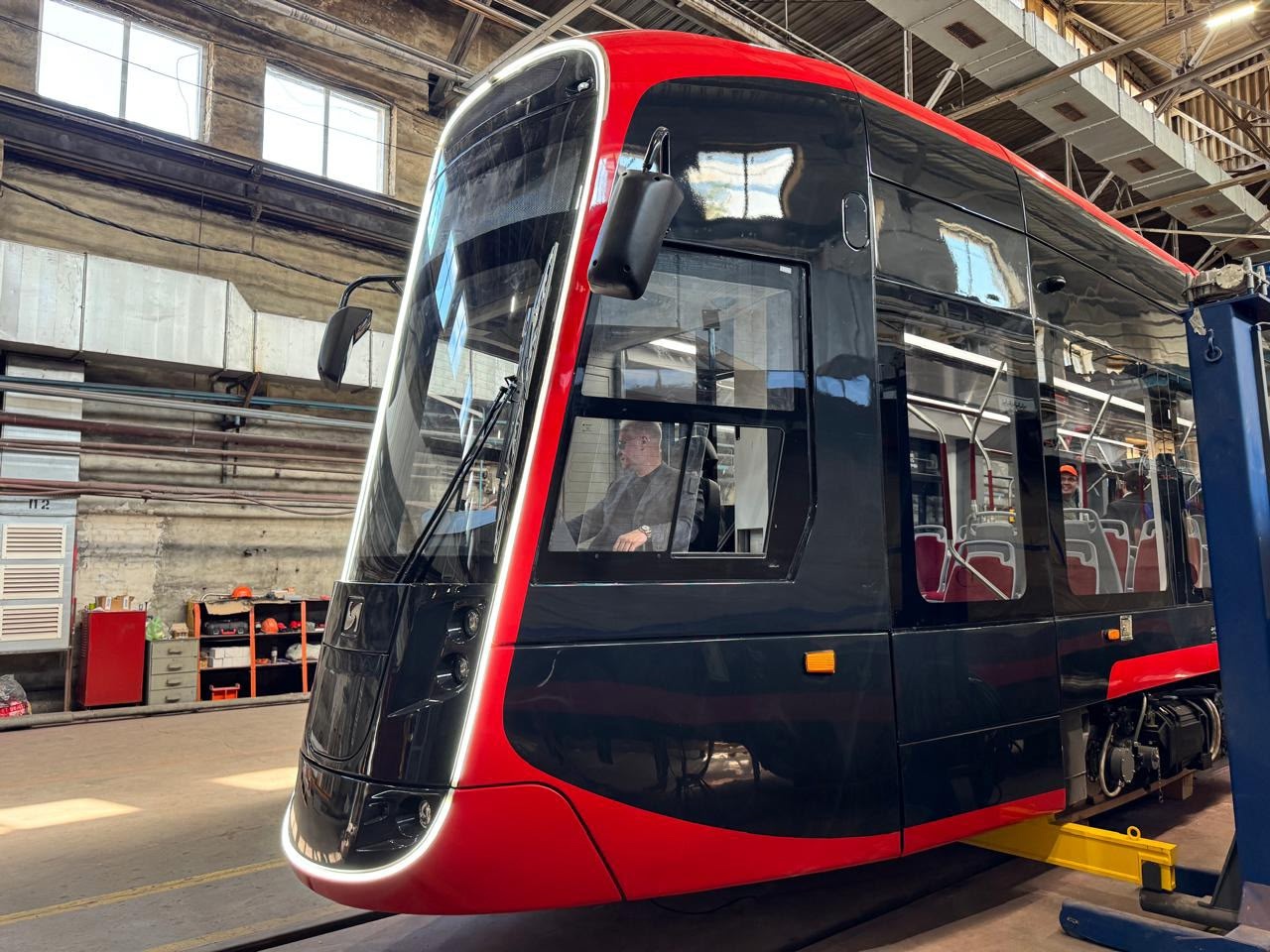 Трамвай, полностью созданный российскими инженерами, отличается повышенной вместимостью – до 308 пассажиров, из которых 70 могут ехать сидя. При этом 65% сидячих мест расположены на низком уровне, что делает поездку комфортной для всех категорий пассажиров, включая людей с ограниченными возможностями.