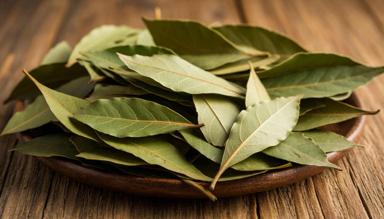 - Положите 3-4 высушенных лавровых листа прямо в соль, слегка утопив их.