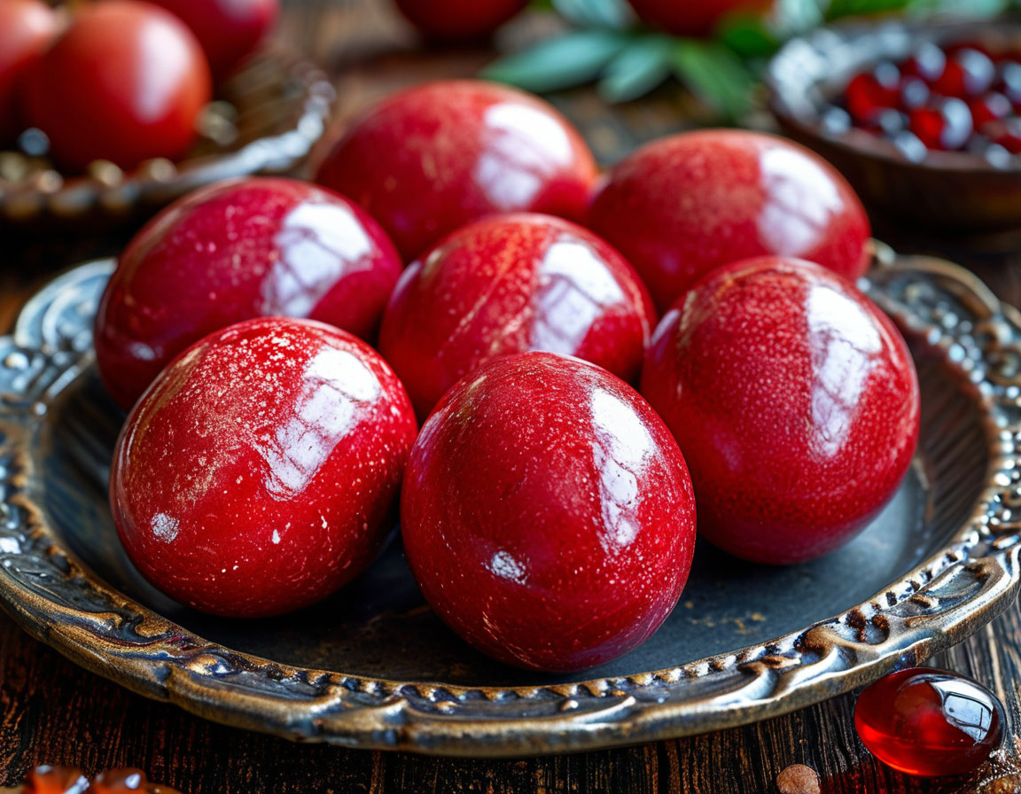 абудьте о химии и уксусе! Предлагаем простой и экологичный способ окрашивания яиц в глубокий бордовый цвет с помощью натурального гранатового сока.
